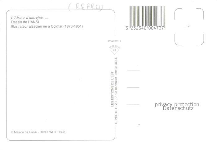74022443 Hansi Waltz J J Kuenstlerkarte Alsace Elsass Illustrateur alsacie Colmar Alsacie autrefois postalisch nicht gelaufen Reprokarte Erhaltung siehe scans [IrynaD87] KatCode: 22240000001800