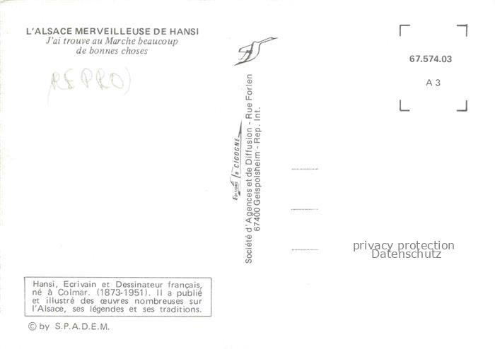 74022201 Hansi Waltz J J Kuenstlerkarte Alsace Elsass Jai trauve au Marche beaucoup de bonnes choses postalisch nicht gelaufen Reprokarte Erhaltung siehe scans [IrynaD87] KatCode: 22240000001800