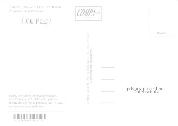 74022215 Hansi Waltz J J Kuenstlerkarte Alsace Elsass Je promene ma petite soeur postalisch nicht gelaufen Reprokarte Erhaltung siehe scans [IrynaD87] KatCode: 22240000001800