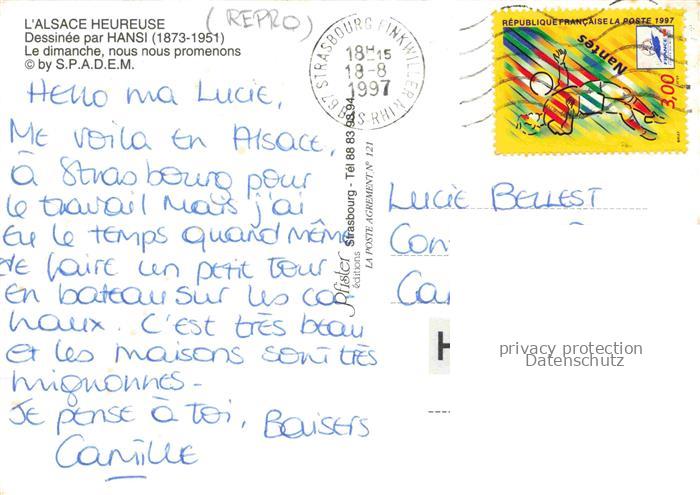 74022192 alte Postkarte Hansi Waltz J J Kuenstlerkarte Alsace Elsass Le dimanche nous promenons postalisch gelaufen Reprokarte Erhaltung siehe scans [IrynaD87] KatCode: 22240000001800