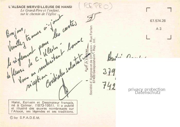 74022434 Hansi Waltz J J Kuenstlerkarte Alsace Elsass Le Grand Pere enfant sur le chemin eglis postalisch nicht gelaufen Reprokarte Erhaltung siehe scans [IrynaD87] KatCode: 22240000001800
