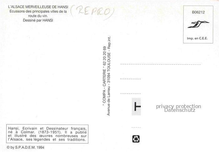 74023577 Hansi Waltz J J Kuenstlerkarte Alsace Elsass Les Clochers Dans les Vignes postalisch nicht gelaufen Reprokarte Erhaltung siehe scans [IrynaD87] KatCode: 22240000001800