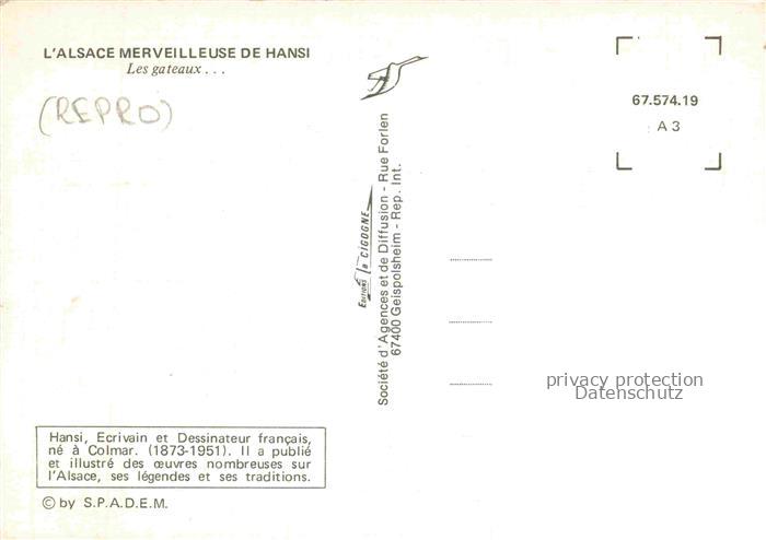74022960 Hansi Waltz J J Kuenstlerkarte Alsace Elsass Les gateaux postalisch nicht gelaufen Reprokarte Erhaltung siehe scans [IrynaD87] KatCode: 22240000001800