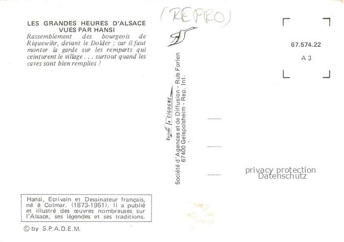 74023582 Hansi Waltz J J Kuenstlerkarte Alsace Elsass Les Grandes Heures Alsace postalisch nicht gelaufen Reprokarte Erhaltung siehe scans [IrynaD87] KatCode: 22240000001800