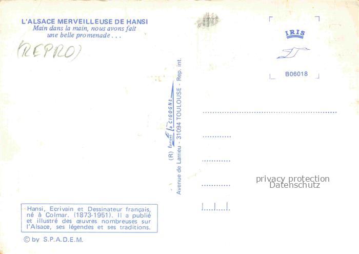 74022449 Hansi Waltz J J Kuenstlerkarte Alsace Elsass Main dans la main nous avons fair belle promenade postalisch nicht gelaufen Reprokarte Erhaltung siehe scans [IrynaD87] KatCode: 22240000001800