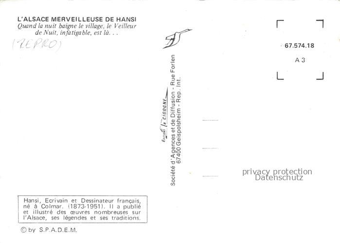 74022424 Hansi Waltz J J Kuenstlerkarte Alsace Elsass Quand la nuir baigne le village postalisch nicht gelaufen Reprokarte Erhaltung siehe scans [IrynaD87] KatCode: 22240000001800