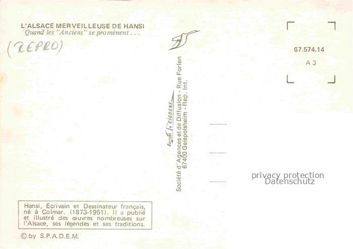 74022953 Hansi Waltz J J Kuenstlerkarte Alsace Elsass Quand les Anciens se promenent postalisch nicht gelaufen Reprokarte Erhaltung siehe scans [IrynaD87] KatCode: 22240000001800