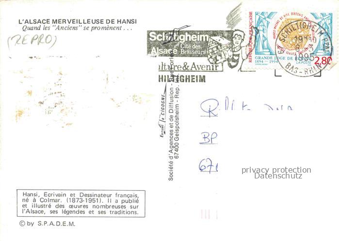 74022425 alte Postkarte Hansi Waltz J J Kuenstlerkarte Alsace Elsass Quand les Anciens se promenent postalisch gelaufen Reprokarte Erhaltung siehe scans [IrynaD87] KatCode: 22240000001800