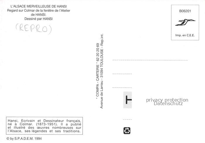 74022230 Hansi Waltz J J Kuenstlerkarte Alsace Elsass Regard sur Colmar fenetre de Atelier postalisch nicht gelaufen Reprokarte Erhaltung siehe scans [IrynaD87] KatCode: 22240000001800
