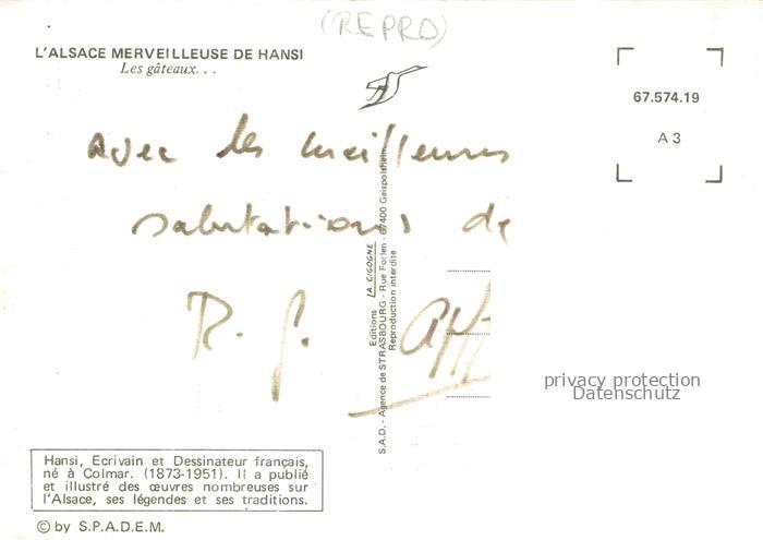 74023332 Hansi Waltz J J Kuenstlerkarte Alsace Elsass Slsace Les gateaux postalisch nicht gelaufen Reprokarte Erhaltung siehe scans [IrynaD87] KatCode: 22240000001800