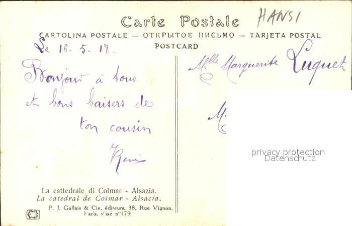 Hansi Waltz J J La cathedrale de Colmar Alsace postalisch nicht gelaufen Erhaltung siehe scans [PaolaD17]