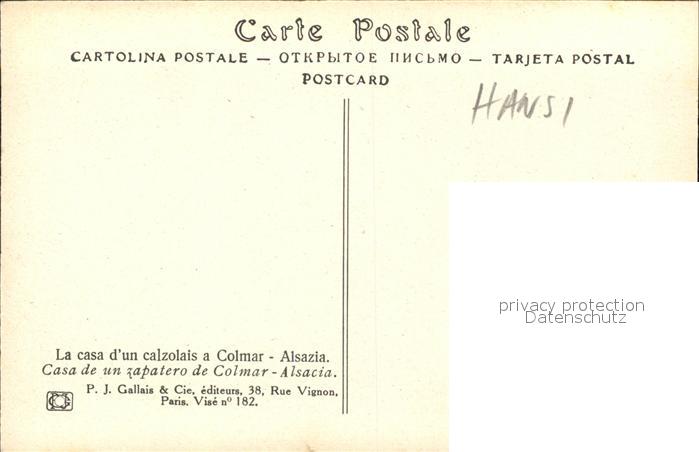 12918694 Hansi Waltz J J La maison d un bottier a Colmar Alsace Schuhmacher postalisch nicht gelaufen Erhaltung siehe scans [PaolaD17] Paol Katcode 22240000001800