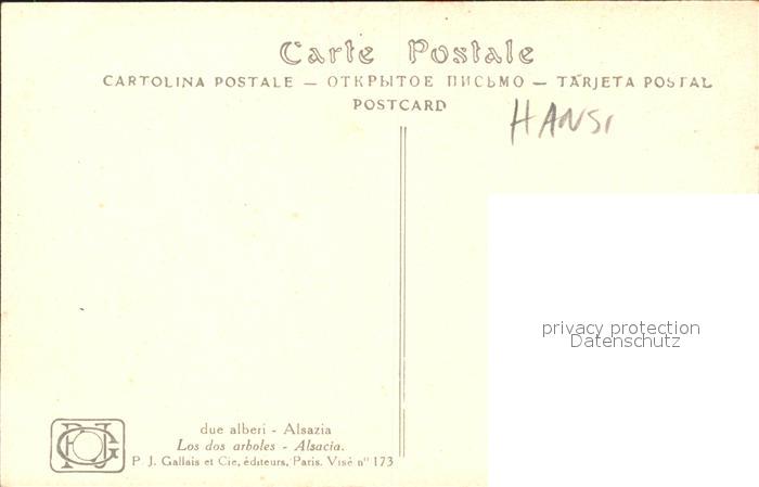 12918693 Hansi Waltz J J Les deux arbres Baeume Elsass Alsatia postalisch nicht gelaufen Erhaltung siehe scans [PaolaD17] Paol Katcode 22240000001800