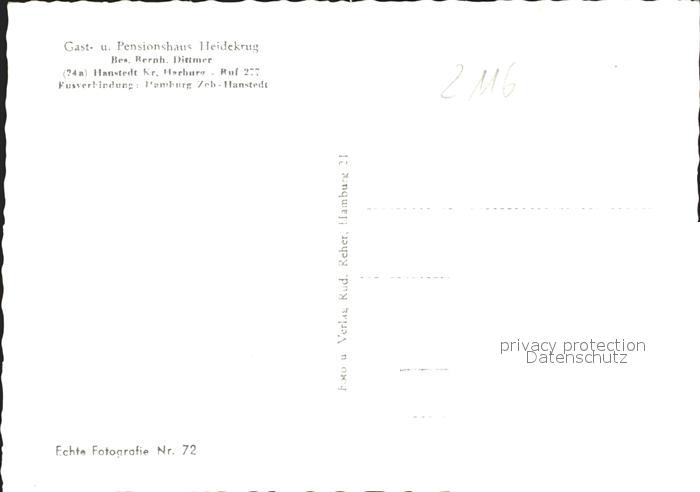 72063721 Hanstedt Nordheide Gast- Pensionahaus Heidekrug postalisch nicht gelaufen Erhaltung siehe scans KatCode: 11110003353016