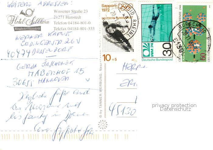 73211702 alte Postkarte Hanstedt Nordheide Hotel Sellhorn Hallenbad Gastraum Gaestezimmer postalisch gelaufen Erhaltung siehe scans [WerneD78] KatCode: 11110003353016