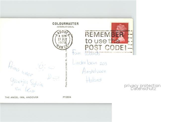 old postcard Hants The Angel Inn Andover postalisch gelaufen Erhaltung siehe scans