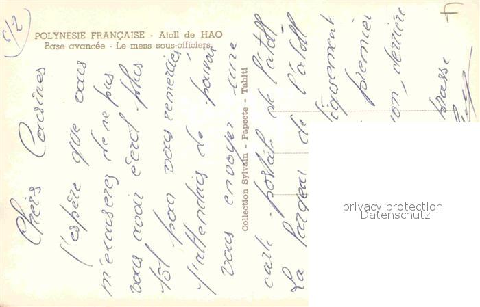 Hao Atoll de Hao Base avancee Le mess sous officiers postalisch nicht gelaufen Erhaltung siehe scans [WerneD78]