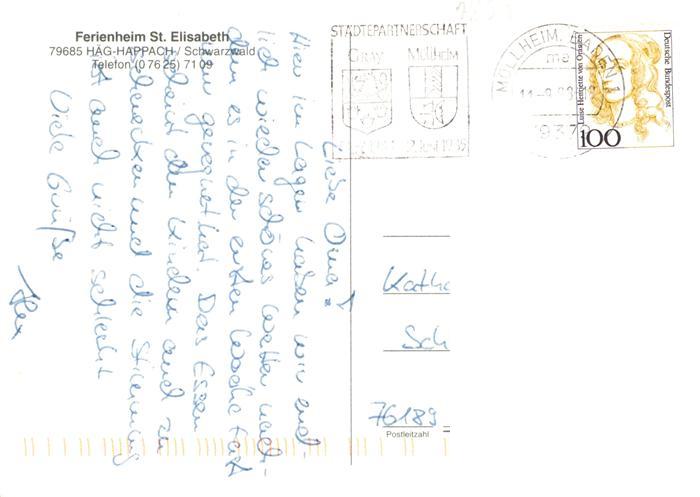 73928361 alte Postkarte Happach Haeg-Ehrsberg Ferienheim St Elisabeth postalisch gelaufen Erhaltung siehe scans [WerneD78] KatCode: 11110008336106