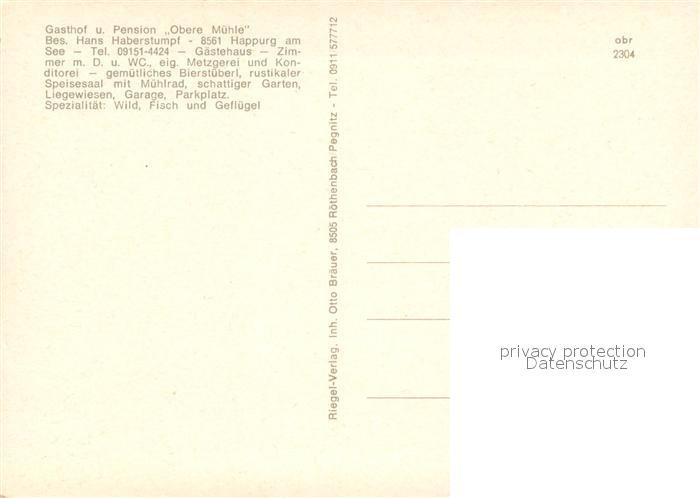 73655363 Happurg Gasthof Pension Obere Muehle Hersbrucker Alb postalisch nicht gelaufen Erhaltung siehe scans [FriedD77] KatCode: 11110009574128