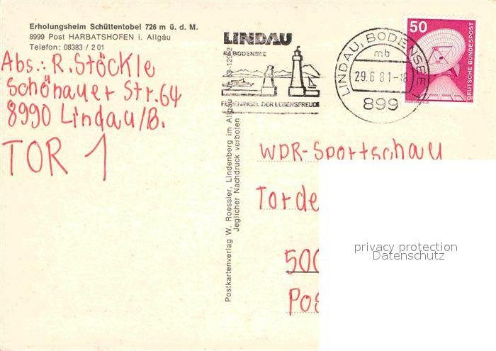 72765569 alte Postkarte Harbatshofen Schuettentobel postalisch gelaufen Erhaltung siehe scans [LiesaD40] KatCode: 11110009776127