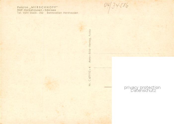 73704551 Harbshausen Pension Merschhoff am Edersee postalisch nicht gelaufen Erhaltung siehe scans [FriedD77] KatCode: 11110006635019