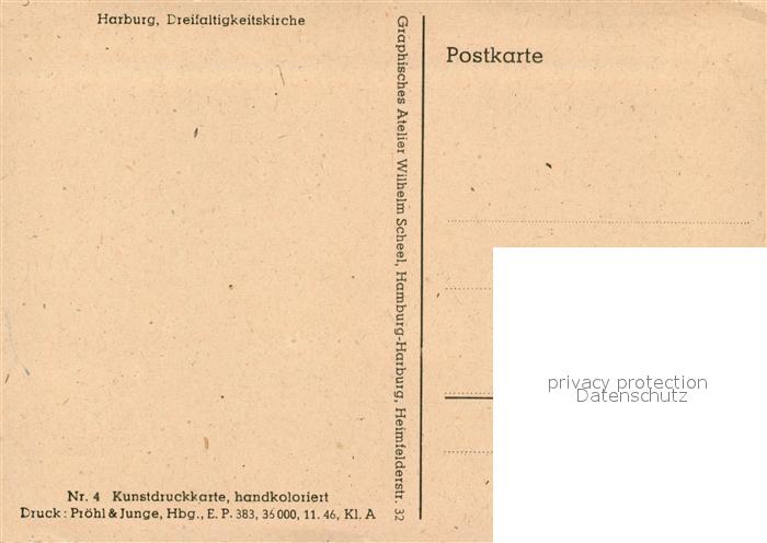 73559545 Harburg Hamburg Dreifaltigkeitskirche Zeichnung handkoloriert Kunstdruckkarte Nr. 4 postalisch nicht gelaufen Erhaltung siehe scans [FriedD77] KatCode: 11110002000000