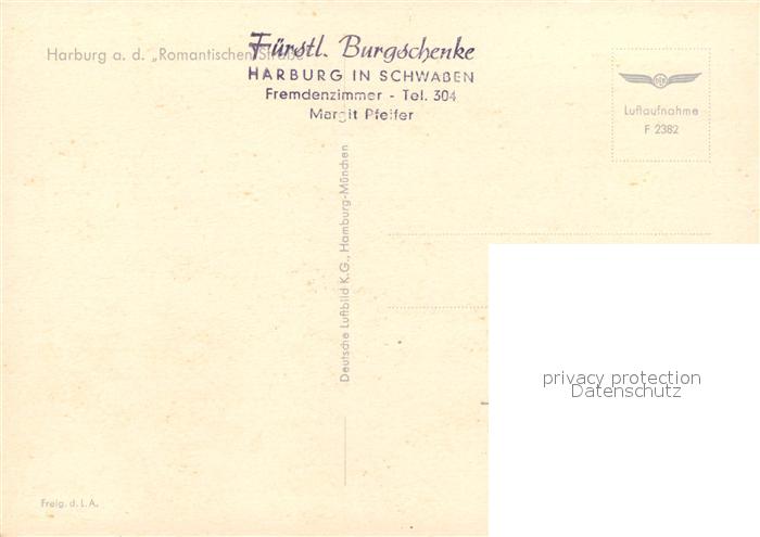 73178972 Harburg Schwaben Fliegeraufnahme Fuerstl. Burgschenke postalisch nicht gelaufen Erhaltung siehe scans [NatalD47] KatCode: 11110009779155