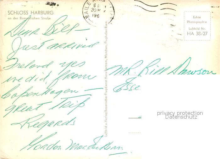 72969658 alte Postkarte Harburg Schwaben Fliegeraufnahme Schloss postalisch gelaufen Erhaltung siehe scans [LiesaD40] KatCode: 11110009779155
