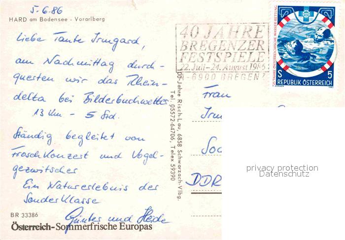 12873089 alte Postkarte Hard Vorarlberg Fliegeraufnahme postalisch gelaufen Erhaltung siehe scans [PaolaD17] KatCode: 11390342080215