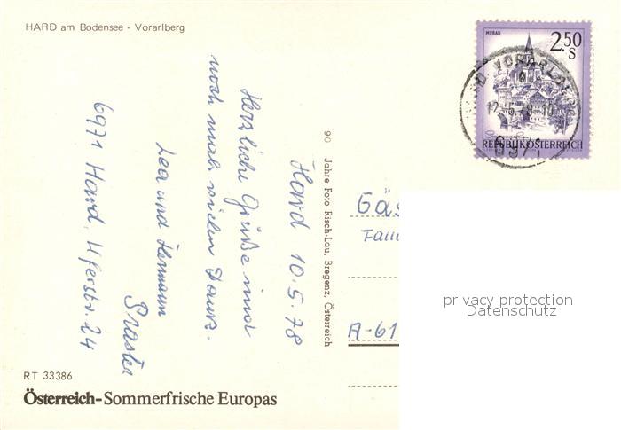 13210810 alte Postkarte Hard Vorarlberg Fliegeraufnahme mit Hafen postalisch gelaufen Erhaltung siehe scans [LiesaD40] KatCode: 11390342080215