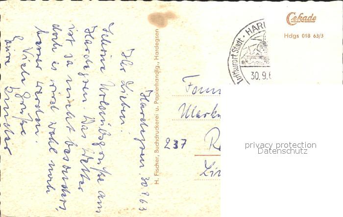 72186957 alte Postkarte Hardegsen Langestrasse Badeanstalt Gesamtansicht Wappen postalisch gelaufen Erhaltung siehe scans KatCode: 11110003155005