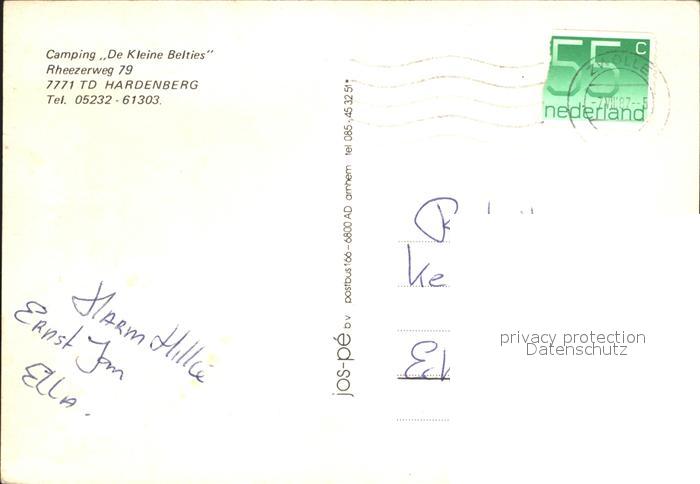 old postcard Hardenberg Niederlande Camping De Kleie Belties postalisch gelaufen Erhaltung siehe scans