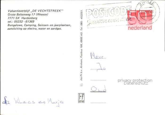 old postcard Hardenberg Niederlande Vakantieverblijf De Vechtstreek Bungalow Campingplatz postalisch gelaufen Erhaltung siehe scans