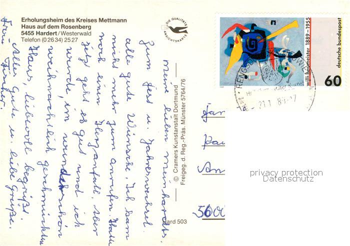 73175691 alte Postkarte Hardert Fliegeraufnahme Erholungsheim Haus auf dem Rosenberg postalisch gelaufen Erhaltung siehe scans [NatalD47] KatCode: 11110007138026