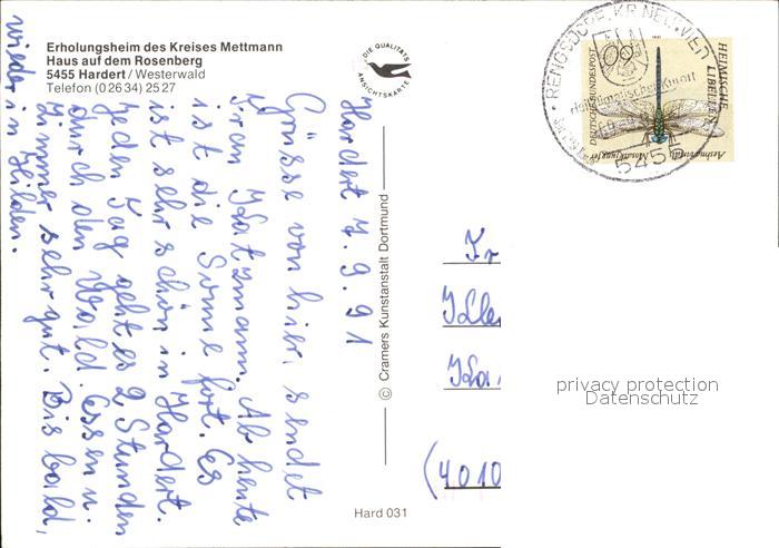 72504443 alte Postkarte Hardert Haus auf dem Rosenberg postalisch gelaufen Erhaltung siehe scans KatCode: 11110007138026