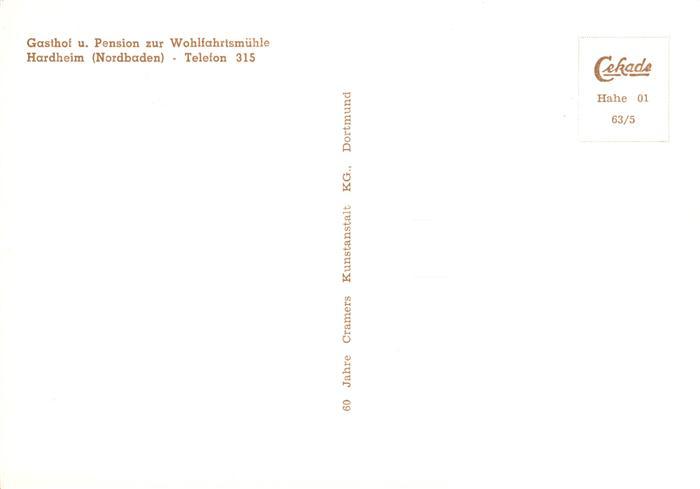 73901101 Hardheim Odenwald Gasthof Pension zur Wohlfahrtsmuehle postalisch nicht gelaufen Erhaltung siehe scans [WerneD78] KatCode: 11110008225032