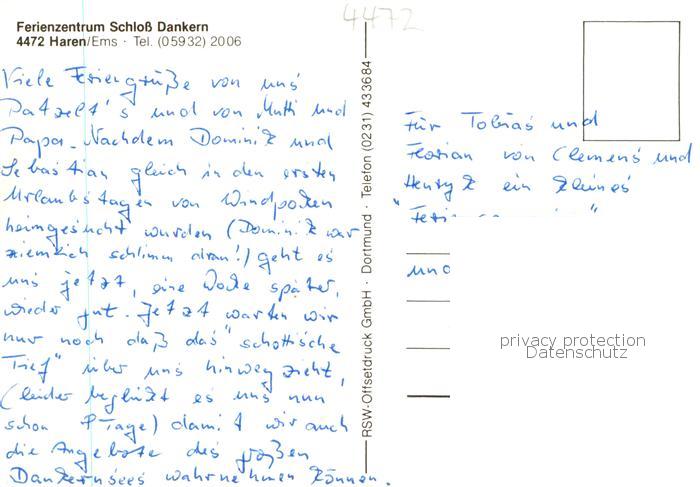 73870193 Haren Ems Ferienzentrum Schloss Dankern Ponyreiten Wasserski Strand Kinderspielplatz postalisch nicht gelaufen Erhaltung siehe scans [WerneD78] KatCode: 11110003454018