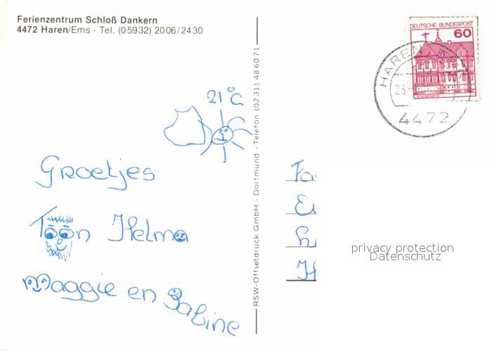 72855845 alte Postkarte Haren Ems Ferienzentrum Schloss Dankern Rutschbahn Badestrand Tretboot postalisch gelaufen Erhaltung siehe scans [FriedD77] KatCode: 11110003454018