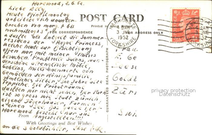 11777749 old postcard Harewood Leeds Harewood House Country House postalisch gelaufen Erhaltung siehe scans KatCode: 11570UKE4E42DA