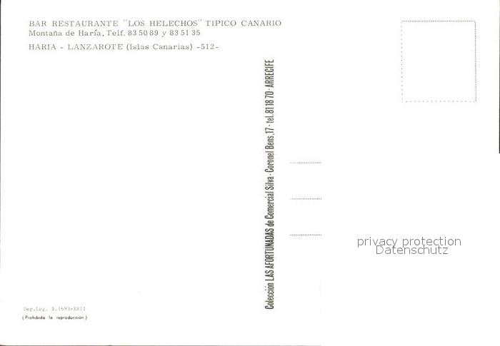 Haria Bar Restaurant Los Helechos postalisch nicht gelaufen Erhaltung siehe scans