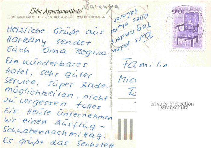74156501 old postcard Harkany Kossuth Bad Harkany Baranya HU Hotel-Lidia Appartementhotel Schwimmbad Thermalbad Pool Restaurant Garten Pavillon Nachtaufnahme postalisch gelaufen Erhaltung siehe scans [Karloger] KatCode: 11550