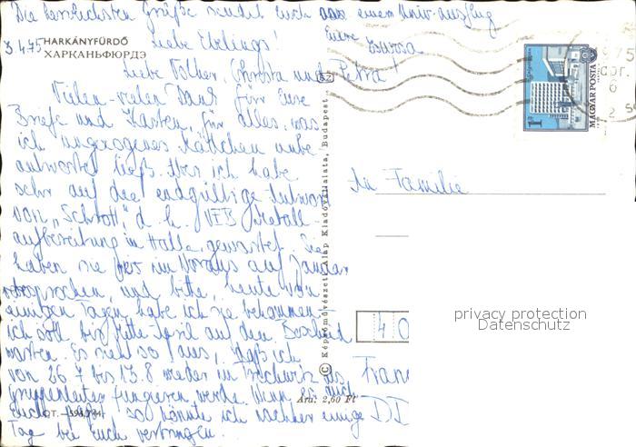 old postcard Harkanyfuerdo Badestrand Wohnanlage postalisch gelaufen Erhaltung siehe scans