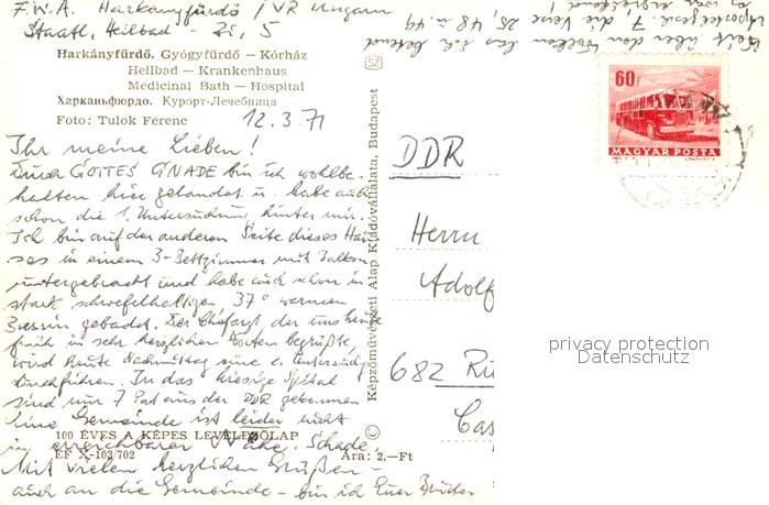 old postcard Harkanyfuerdo Heilbad Krankenhaus postalisch gelaufen Erhaltung siehe scans [WerneD78]