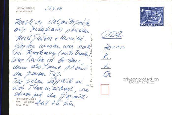 old postcard Harkanyfuerdo Hotel Freibad Rutschbahn postalisch gelaufen Erhaltung siehe scans