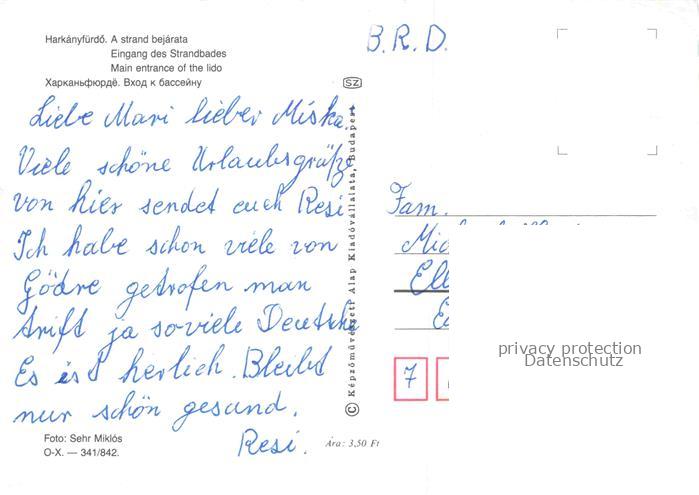 74005893 Harkanyfuerdo HU Eingang des Strandbades postalisch nicht gelaufen Erhaltung siehe scans [WerneD78] KatCode: 11550
