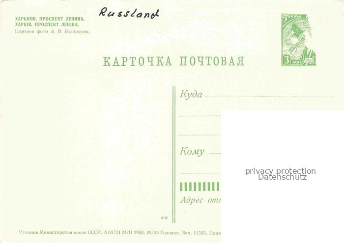 74040313 Harkov Ukraine Lenin Allee postalisch nicht gelaufen Erhaltung siehe scans [IrynaD87] KatCode: 11440