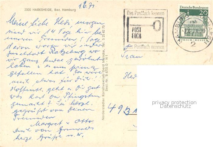 73672451 alte Postkarte Harksheide Brunnen Hochhaus postalisch gelaufen Erhaltung siehe scans [FriedD77] KatCode: 11110001060063