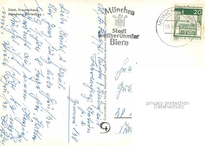 72895543 alte Postkarte Harlaching Muenchen Staedt Krankenhaus Fliegeraufnahme postalisch gelaufen Erhaltung siehe scans [WerneD78] KatCode: 11110009162000