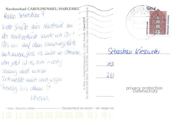 Harlesiel Carolinensiel Ostfriesland Wittmund Niedersachsen Fliegeraufnahme postalisch gelaufen Erhaltung siehe scans [WerneD78] alte Postkarte Wern Katcode 11110003462019