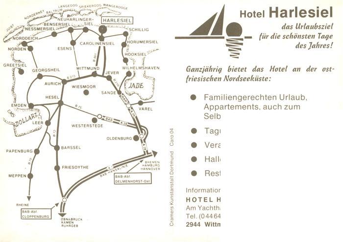 73875904 Harlesiel Hotel Harlesiel Restaurant Kegelbahn Yachthafen postalisch nicht gelaufen Werbekarte (keine Postkarte) Erhaltung siehe scans [FriedD77] KatCode: 11110003462019